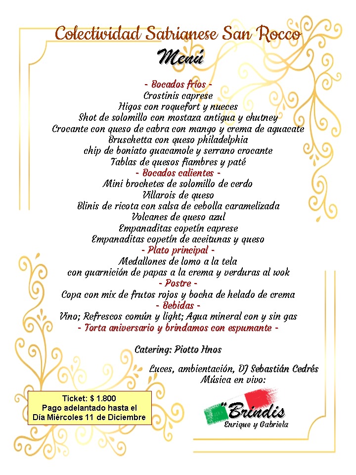 DOMINGO 10 DE DICIEMBRE de 11 a 20.30 Hs. – 59a. Fiesta de San Rocco –